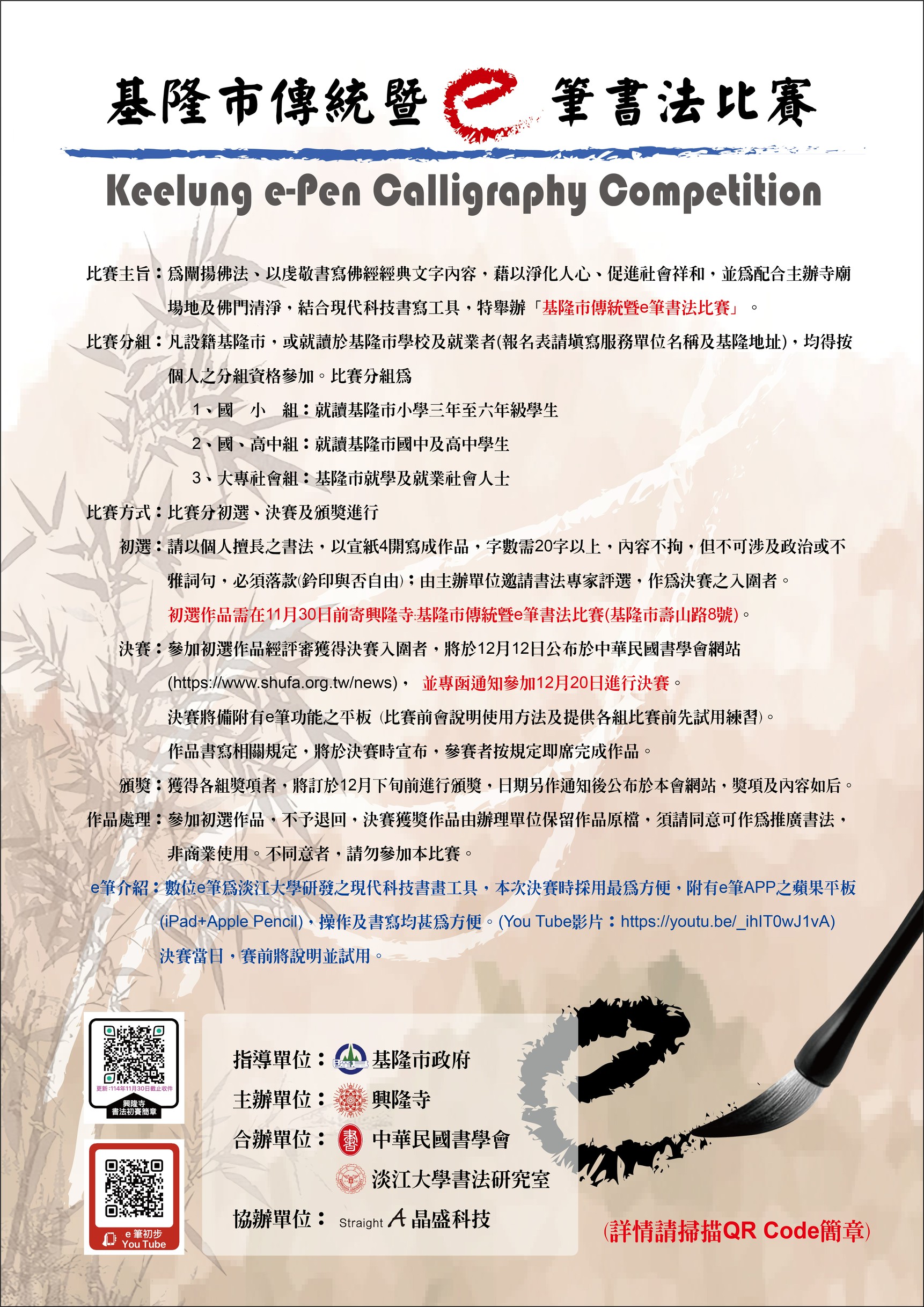 轉知~本市興隆寺辦理「基隆市傳統暨 e 筆書法比賽簡章 」延長參賽時間至114年11月30日